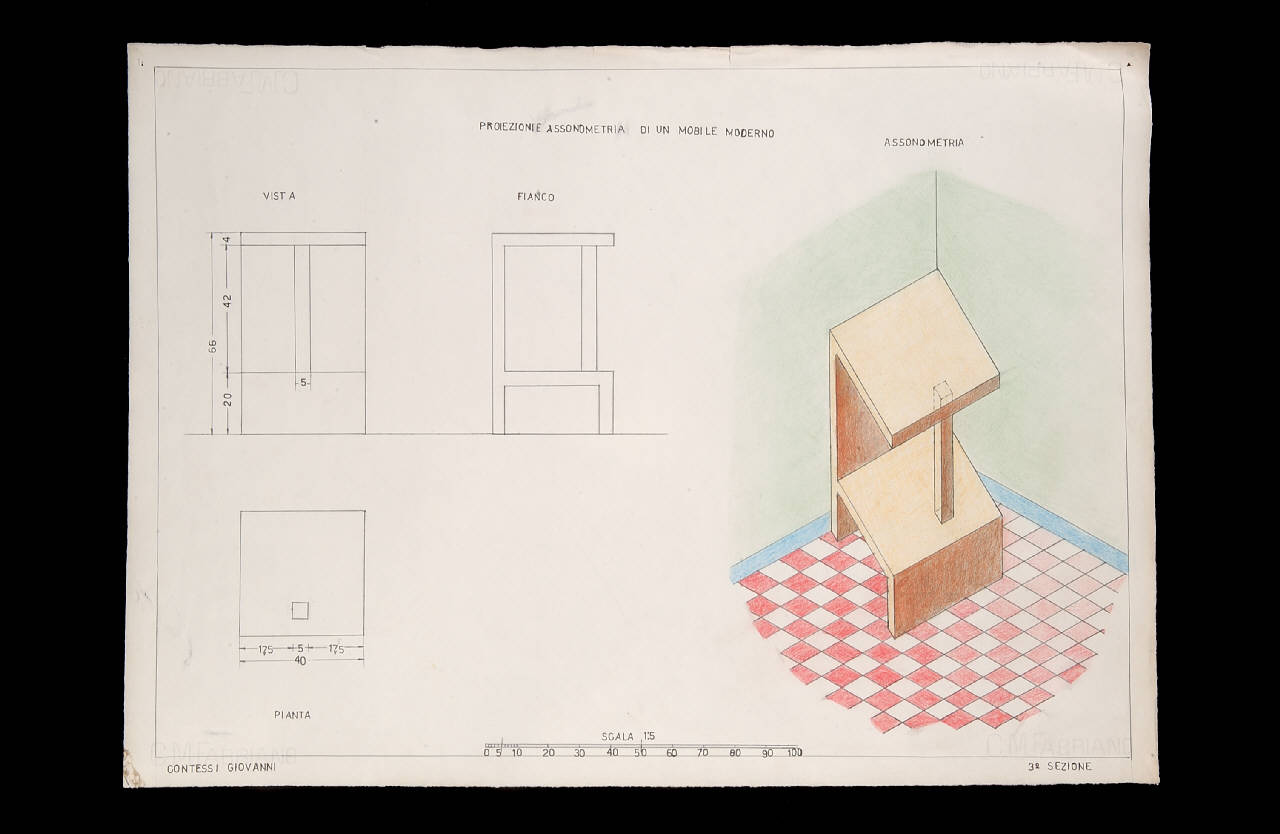 Proiezioni e assonometria di un mobile moderno. Proiezioni e assonometria di un mobile