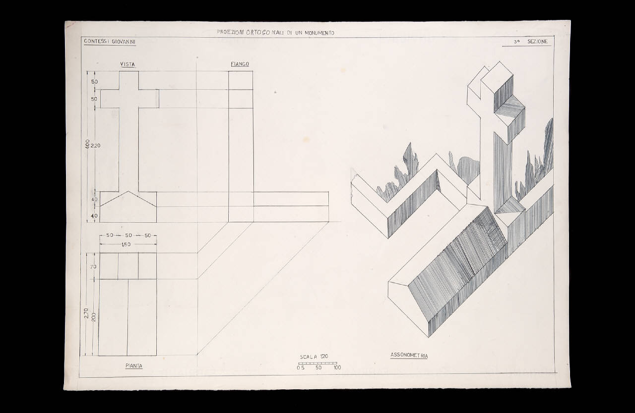 Proiezioni ortogonali di un monumento. Monumento funebre con proiezioni ortogonali