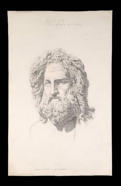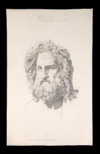 - NOTIZIE STORICO CRITICHE Il disegno riproduce la stampa di Volpato e Morghen ("Tete de Jupiter, et d'Ajax") raffigurante la testa colossale di Giove al Museo Vaticano.