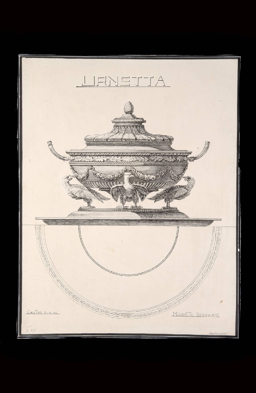 - NOTIZIE STORICO CRITICHE Il disegno è tratto da una stampa di Giocondo Albertolli appartenente alla serie "Alcune decorazioni di nobili sale" (t. XX).