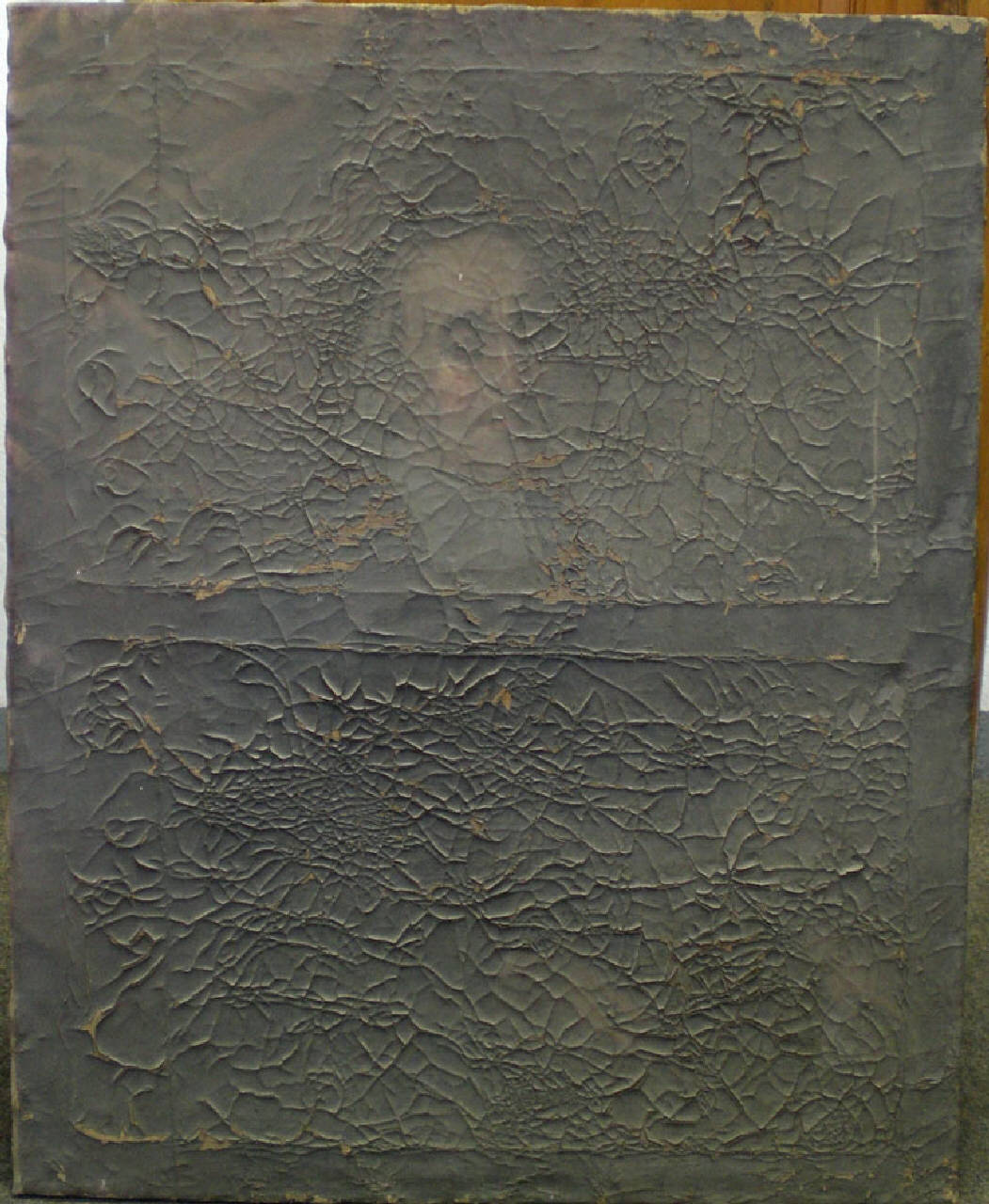 Dipinto a olio su tela, di forma rettangolare, senza cornice. Tela composta da due pezzi cuciti insieme. Ritratto di uomo a mezzo busto di tre quarti verso destra.