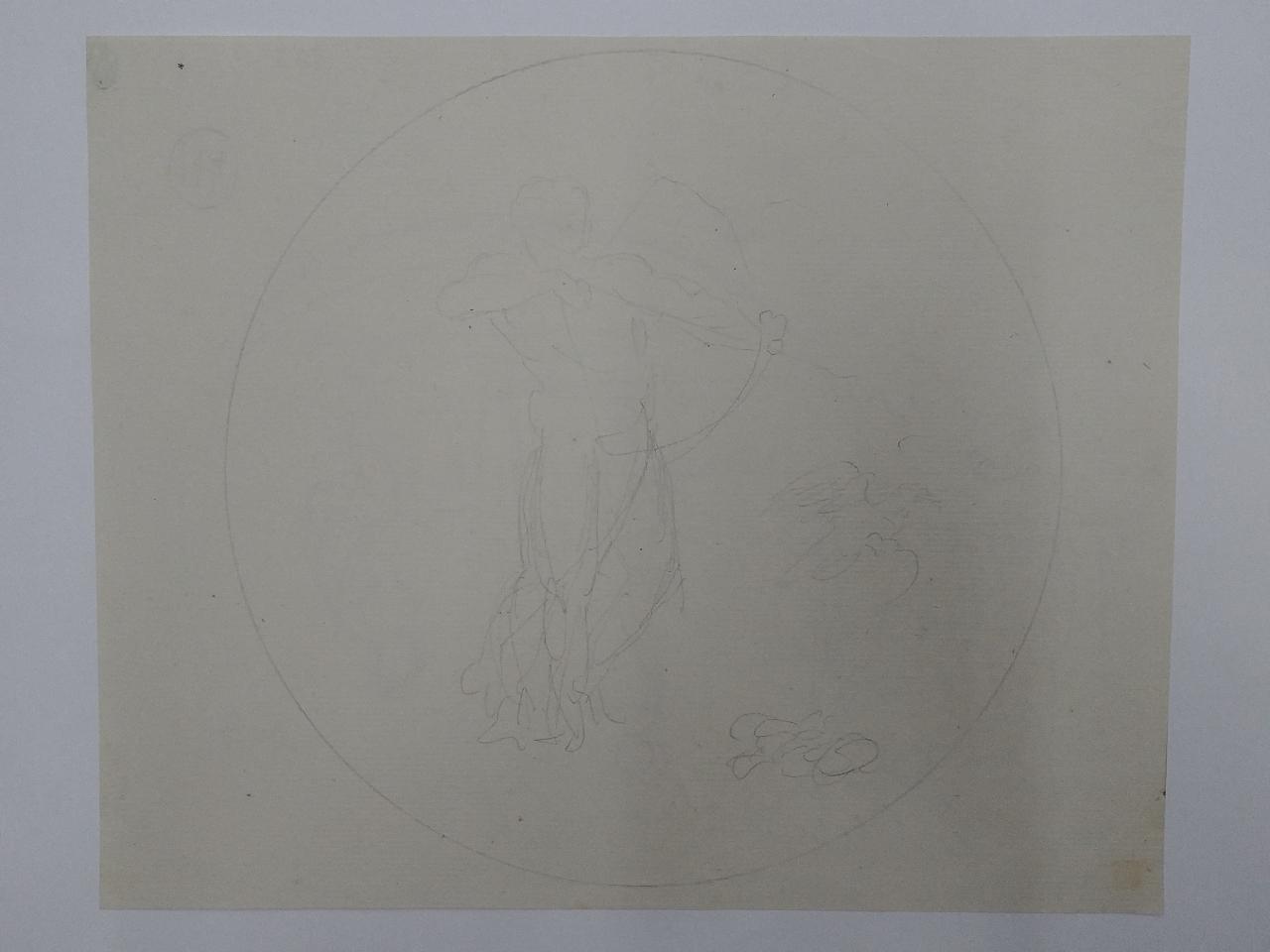 - NOTIZIE STORICO CRITICHE Il disegno presenta uno studio per medaglia con scena allegorico-mitologica e uno studio di gruppo di persone in atto di supplica. La scena allegorica, con una figura in atto di omaggio verso un'erma, ricorda il disegno n° 70, anche se non è possibile individuare l'opera di riferimento.