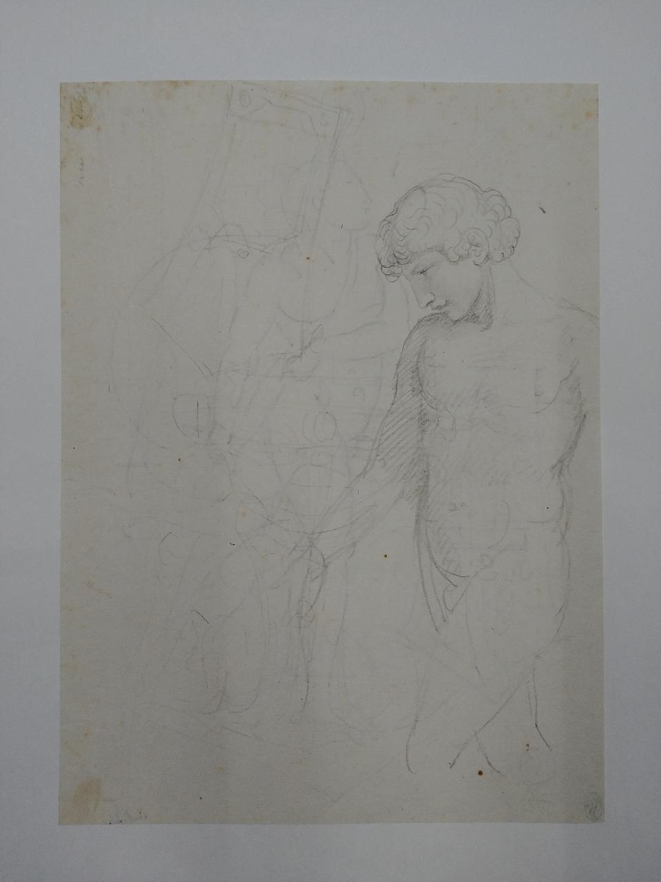 - NOTIZIE STORICO CRITICHE Il disegno raffigurante Amore in atto di estrarre la spada, è molto vicino per soggetto e stile alle opere eseguite da Appiani nell'ultimo decennio del XVIII secolo.\nAl disotto al disegno a penna è visibile lo schizzo a matita di una figura maschile.