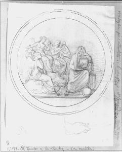 - NOTIZIE STORICO CRITICHE Il disegno è lo studio finale per la medaglia commemorativa del fallito attentato a Napoleone, avvenuto il 24 Dicembre 1800, data che costituisce il termine post quem per la datazione dell'opera in oggetto. Il tema è svolto ricorrendo all'allegoria (il Tempo e le Parche). La medaglia fu incisa da Luigi Manfredini e coniata presso la Zecca di Milano. L'iconografia tornerà nei "Fasti napoleonici" ma distesa nel campo rettangolare della teca e arricchita di ulteriori particolari.