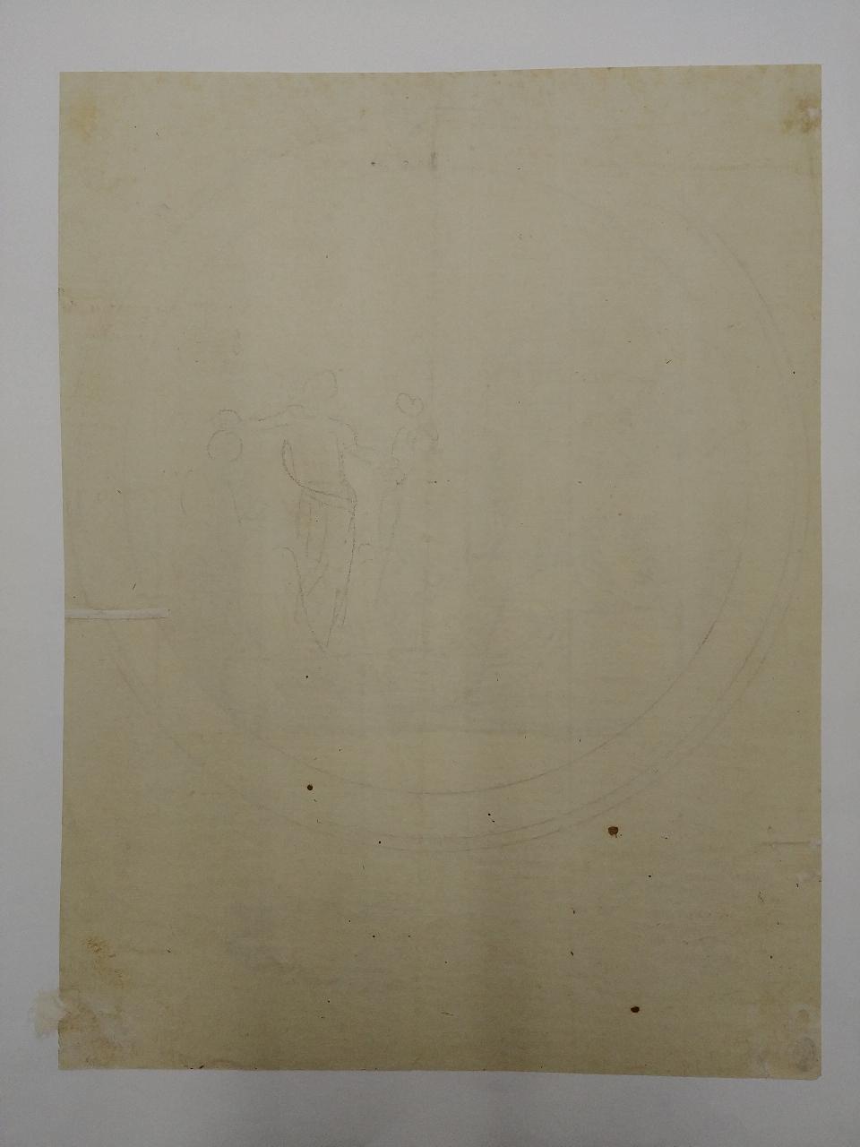 - NOTIZIE STORICO CRITICHE Il disegno è lo studio finale per la medaglia commemorativa del fallito attentato a Napoleone, avvenuto il 24 Dicembre 1800, data che costituisce il termine post quem per la datazione dell'opera in oggetto. Il tema è svolto ricorrendo all'allegoria (il Tempo e le Parche). La medaglia fu incisa da Luigi Manfredini e coniata presso la Zecca di Milano. L'iconografia tornerà nei "Fasti napoleonici" ma distesa nel campo rettangolare della teca e arricchita di ulteriori particolari.