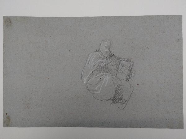 - NOTIZIE STORICO CRITICHE Il disegno, raffigurante studi di nudo maschili, è riconducibile agli angeli presenti nei pennacchi della cupola della chiesa di Santa Maria presso San Celso, affrescata da Appiani tra il 1792 e il 1795.\n\nNon sembra corrispondere ad alcuna di angelo.\nAl verso studio per la figura di un Evangelista.