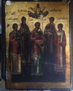 L'icona vede nella metà inferiore un gruppo di cinque santi (da sinistra a destra: Simone, Xenia, Arin, Victor, Aviv) posti in posizione frontale ai devoti che invitano alla preghiera, mentre nella parte superiore centrale troviamo Gesù in Gloria.