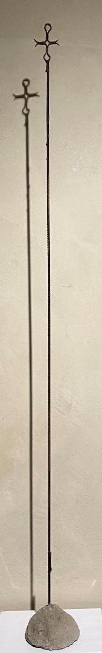 La croce astile realizzata in materia povera, evidenzia accompagna la verticalità dell'insieme. L’artista, versato nell’uso di materiali di recupero antichi, forza la sua scultura in modo che porti in sé e comunichi quel paradosso che permette alla croce di illuminare e coinvolgere ogni persona nel vivere contemporaneo, misurandosi con il mistero di salvezza entrato nella storia. Elementi semplici che rinascono grazie alla sapiente creatività dello scultore\n\n
