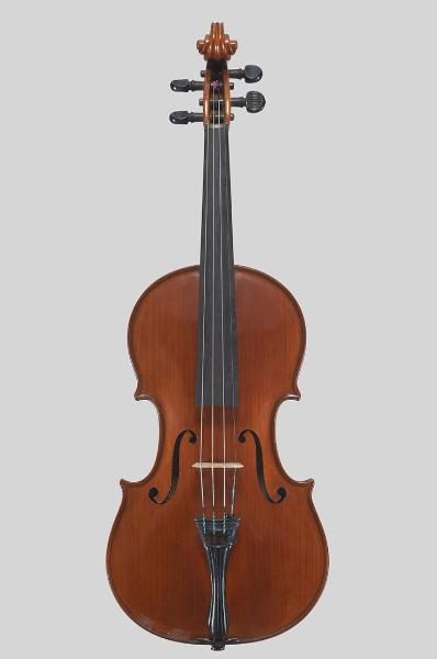 La cassa appare caratterizzata da spalle superiori molto tondeggianti. La tavola armonica è formata da due pezzi. Soluzioni stilistiche non sempre accurate conferiscono allo strumento un aspetto poco armonico, si vedano - ad esempio- la testa scolpita in modo approssimativo, le punte piccole appena abbozzate, la giunzione dei filetti e i fori armonici eccessivamente aperti. Il ponticello non è originale, ma è stato sostituito.