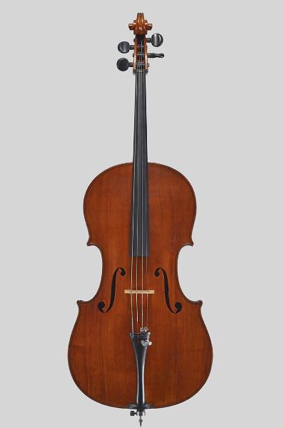 Violoncello di buon formato, caratterizzato, per quando riguarda la tavola armonica, da fori armonici di dimensioni considerevolI, che denotano indecisioni nell'esecuzione. Il filetto è posizionato all'interno del bordo dello strumento con sguscia verso l'esterno piuttosto piatta e non ben definita. Le punte, non di grandi dimensioni, sono eccessivamente arrotondate e poco definite nel profilo e nella sguscia presentano un filetto con la porzione più laterale nera leggermente allungata. La vista laterale della cassa evidenzia un bordo sottile e la bombatura del fondo che appare più alta di quella della tavola. Le bombature sono ben scolpite e ben raccordate alla sguscia verso il bordo. Le testa nella vista frontale presenta un occhio molto sporgente con il primo giro contenuto in altezza.\nLo smusso leggermente arrotondato disegna lo sviluppo della chiocciola. La vernice eccessivamente cristallina presenta un caratteristico craquelé.\nIl fondo e la tavola armonica sono costituiti da due pezzi giuntati al centro. Il ponticello non è originale.