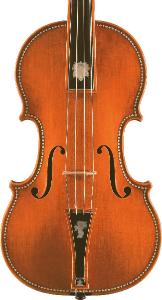 Ispirato al violino Hellier di Antonio Stradivari (1679), lo strumento si contraddistingue nella tavola e nel fondo per i caratteristici decori realizzati con la tecnica dell’intarsio, le fasce sono percorse da motivi floreali realizzati a intarsio con riempimento di stucco d’ebano e colla. Il manico, la tastiera, la catena e l’incastro del manico sono costruiti secondo le caratteristiche degli strumenti barocchi. La cordiera e la tastiera presentano un amorino e uno stemma araldico in madreperla chiaro riferimento a modelli stradivariani. Il fondo e la tavola armonica sono formati da un unico pezzo.\n
