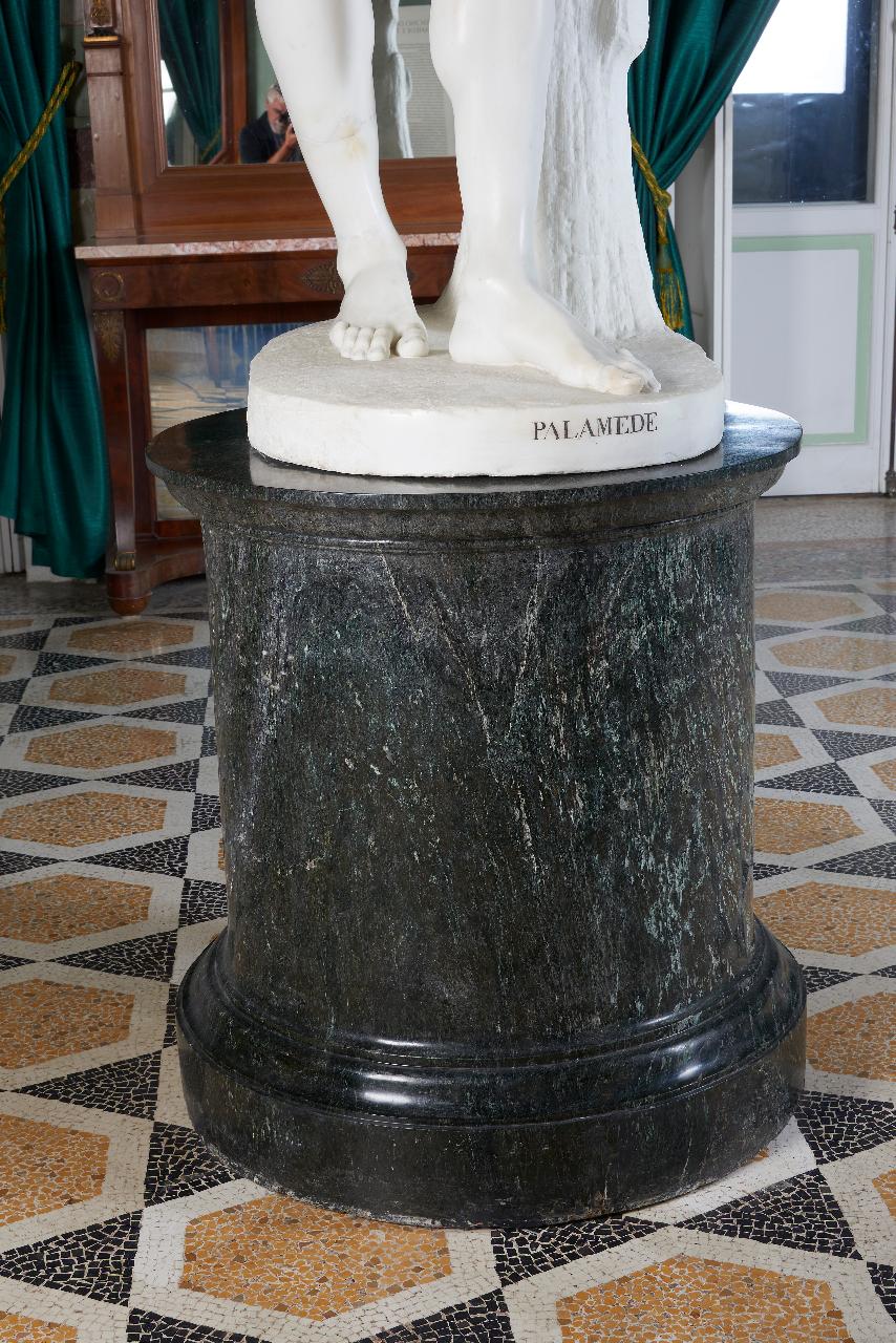 Basamento pieno in marmo serpentino, di forma cilindrica, con base e piano modanati. Superficie lucida.