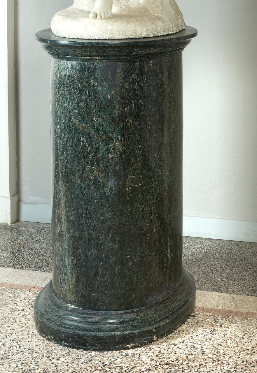 Basamento pieno, in marmo serpentino, di forma ellittica. La base e il piano sono modanati. Superficie lucida.