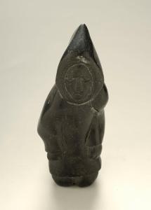 Statua di Inuk inginocchiato (indossa il kuletak, tipico abito maschile). Opera di notevole valore artistico e di fattura antica.\nCome da descrizione in elenco.