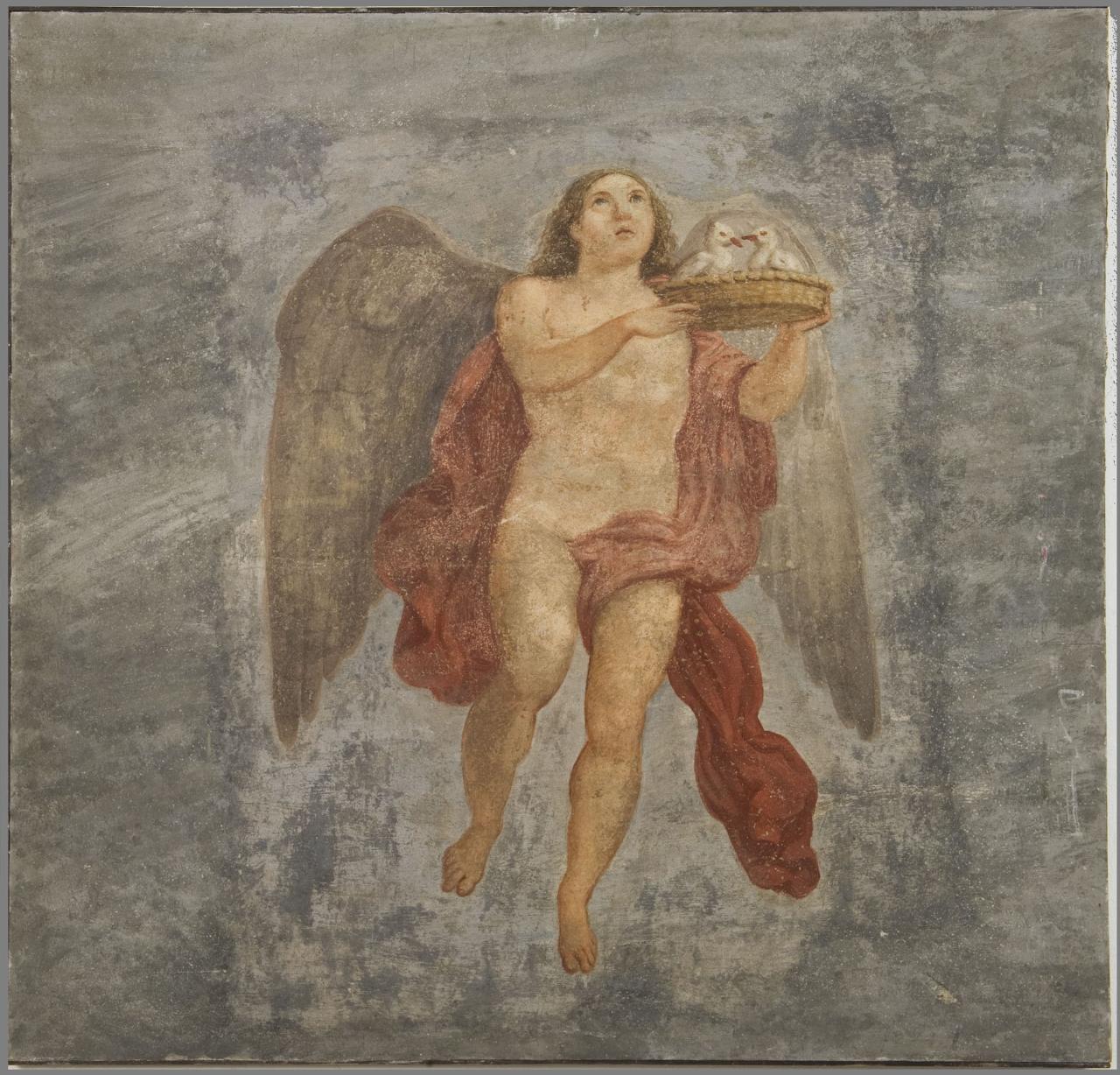 Angelo con simbolo della Passione: cesto con colombe. Angeli