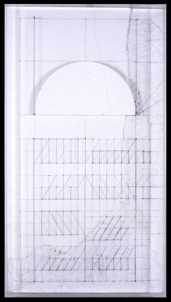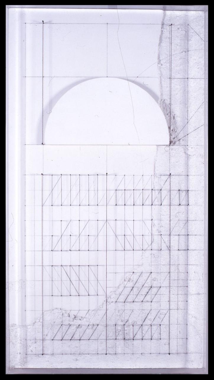 tavola/ tecnica mista polimaterica (fili, chiodi, cemento, plexiglass)