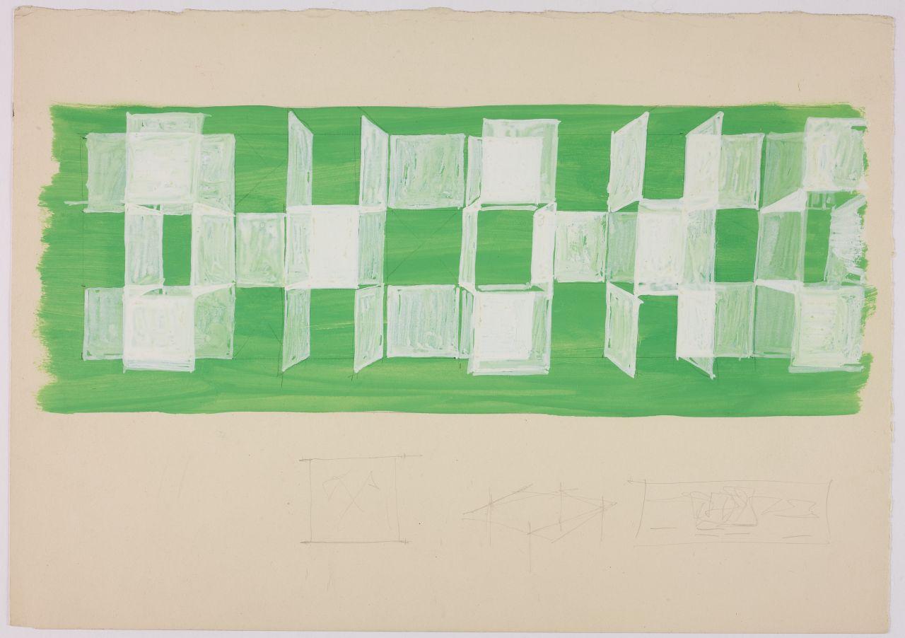 Bozzetto per vetrina ai grandi magazzini la Rinascente. strutture mobili per allestimento
