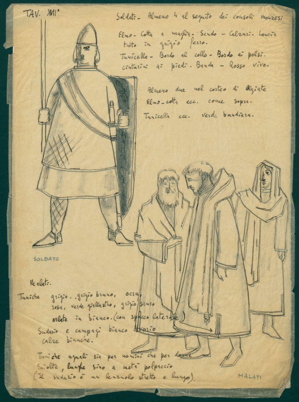 Figurini per costume di scena dello spettacolo "Il sacro mimo di Gerardo dei Tintori". costumi teatrali per soldati e malati