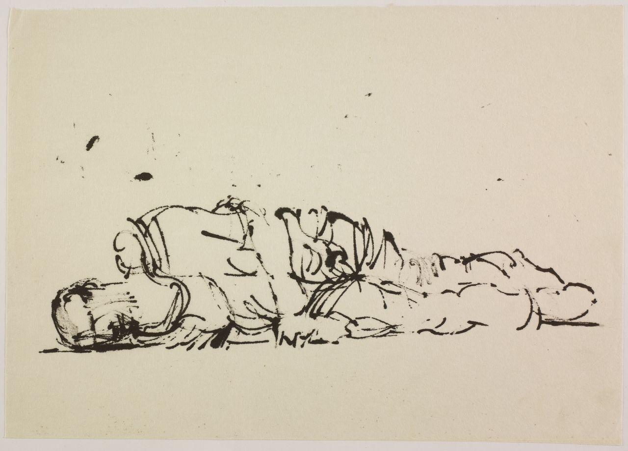 Disegno per mostra allestita alla Libreria Salto di Milano, 1961. uomo riverso a terra