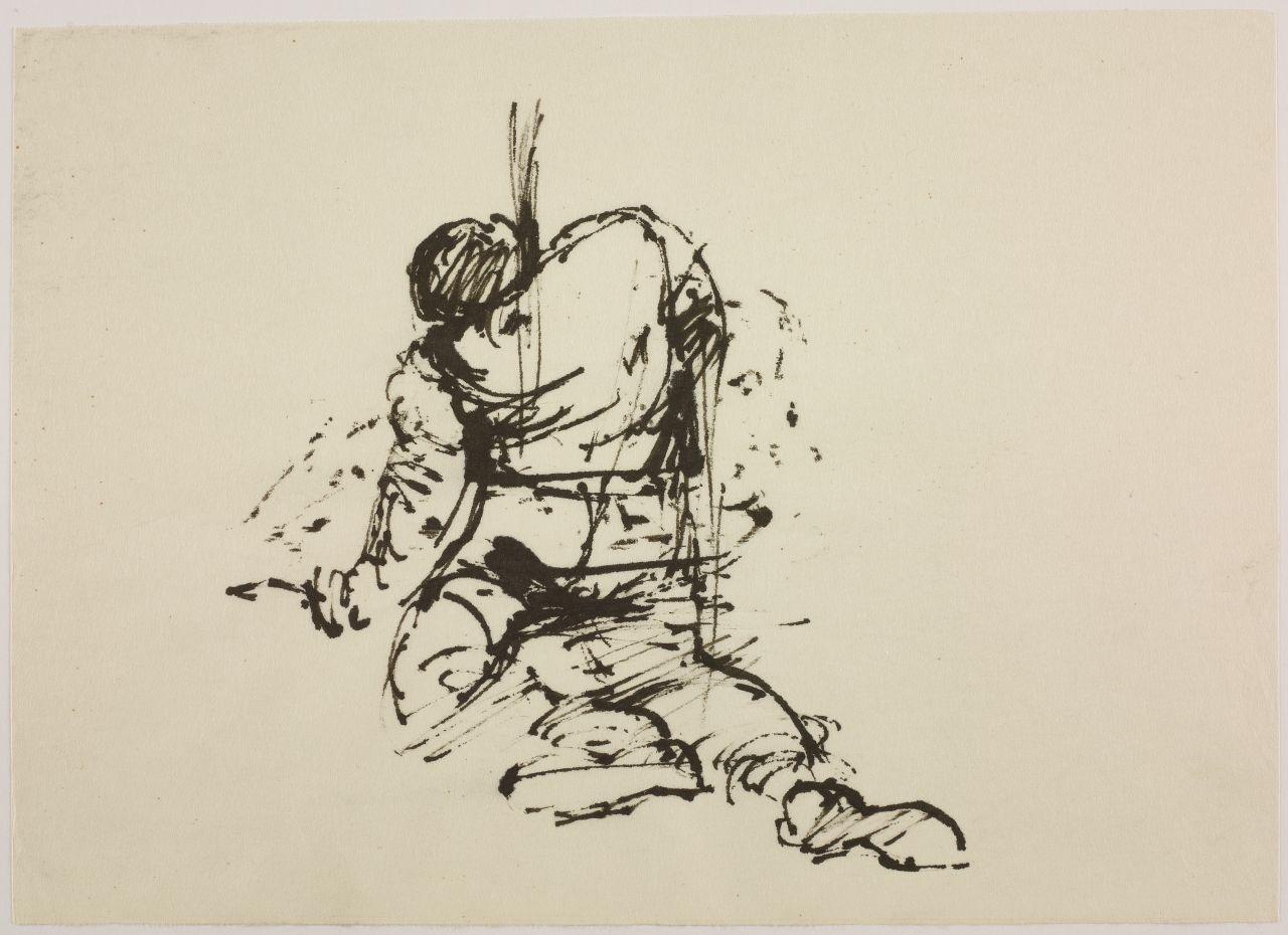 Disegno per mostra allestita alla Libreria Salto di Milano, 1961. uomo riverso a terra