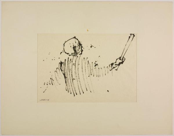 Disegno per mostra allestita alla Libreria Salto di Milano, 1961. uomo armato
