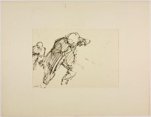 Disegno per mostra allestita alla Libreria Salto di Milano, 1961. militari in movimento