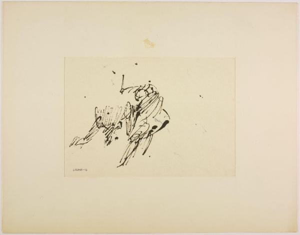 - NOTIZIE STORICO CRITICHE "Serie di immagini rapide, di strutture elastiche, in cui il peso diverso dei neri, e la composizione stabiliscono di volta in volta un movimentato equilibrio" [...] "Questi segni ci rivelano una trama di significati. File di elmetti, mani e bastoni alzati, braccia in atto di scagliare. Non simboli, ma qualcosa come la forma culminante di una situazione umana" [...] "In questi disegni qualcosa sta accadendo. Così non offrono un dato alla memoria, ma un oggetto all'emozione". Citazioni tratte dalla presentazione di Emilio Tadini alla mostra di disegni di Giancarlo Iliprandi alla Libreria Salto di Milano, 1961. L'ampio ciclo di disegni è stimolato dalla strage di Reggio Emilia del 7 luglio 1960, quando durante una manifestazione sindacale le violenze delle forze dell'ordine portarono alla morte di cinque operai. L'evento e l'ampio numero dei poliziotti impiegati, più di trecento, portarono Iliprandi a interrogarsi sulla violenza in una serie di disegni che sembrano seguire la radiocronaca dell'evento, con "movimenti di macchina" che si avvicinano e allontanano di continuo dalle scene del tumulto, focalizzandosi sulle masse, vuoi dei militari vuoi dei manifestanti, così come sui corpi a terra dei feriti e dei morti. Il disegno a china su carta di riso evidenzia l'urgenza espressiva e le possibilità drammatiche, evidenti soprattutto quando la scena è ridotta a poche chiazze d'inchiostro, oppure agli ultimi movimenti convulsi di un corpo disteso a terra. Scene di cronaca che evocano al contempo momenti universali e fuori dal tempo riferendosi più in generale alle lotte e alle violenze di tutti i tempi. L'ampio ciclo di disegni è realizzato per una mostra alla Libreria Salto di Milano. Da questa serie di opere Iliprandi ricava anche una più ampia riflessione sul rapporto tra grafica e disegno creando una sequenza d'immagini introdotta da un breve testo. Un materiale che sembrerebbe costituire una sezione speciale della stessa mostra: "sezione inutile per quanti sono esperti di codeste cose, militano in questo campo, ma utile forse per i profani, che sono sempre la maggioranza e che sanno così poco del nostro lavoro di ricerca". Lo stesso testo con una selezione d'immagini è poi pubblicato sulla rivista "Serigrafia" nel maggio-giugno 1963 con il titolo "Incontro fra la grafica e il disegno". Dopo un decennio di esperienze professionali dove la pittura e il disegno si intersecano con la grafica e la fotografia, Iliprandi crede di dover mettere a punto qualche considerazione, probabilmente stimolato anche nel vedere alla propria mostra una certa incapacità di leggere criticamente il disegno e constatare una sempre maggiore richiesta di specializzazione professionale.