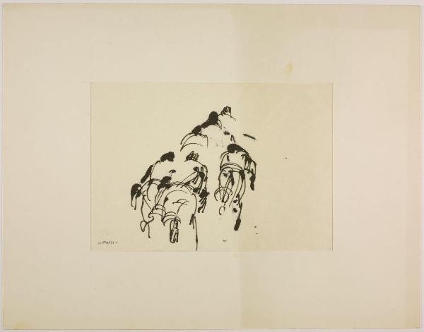 Disegno a inchiostro di china realizzato su foglio di carta di riso montato su passe-partout.