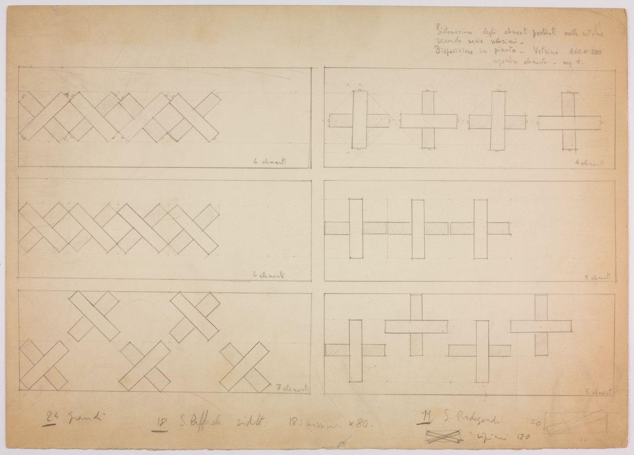 Bozzetto per vetrina ai grandi magazzini la Rinascente. disposizione strutture per allestimento