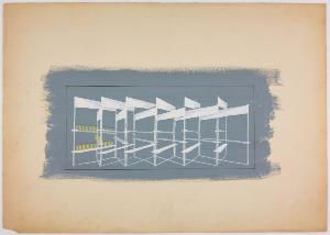 Bozzetto per vetrina ai grandi magazzini la Rinascente. strutture mobili per allestimento