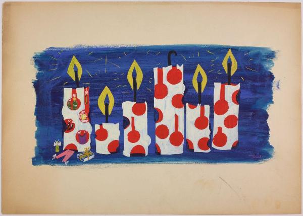 Bozzetto per l'allestimento di Natale ai grandi magazzini la Rinascente. candele decorate