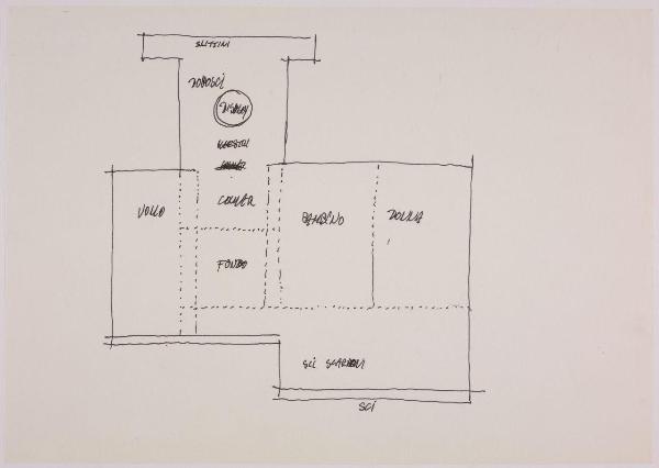 Bozzetto planimetrico del reparto Ski dei grandi magazzini la Rinascente. planimetria