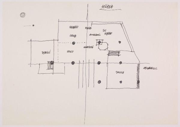 Bozzetto planimetrico del reparto Ski dei grandi magazzini la Rinascente. planimetria