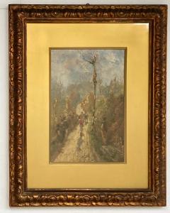 - NOTIZIE STORICO CRITICHE L'opera fa parte del nucleo più importante della collezione Macchi, composta da una serie di disegni e dipinti dell’artista Filippo Carcano (1840-1914), realizzati nella seconda metà dell'Ottocento, che riprendono soggetti di costume o ritratti religiosi e sono realizzati con tecniche diverse, come il carboncino, dipinti all’acquerello oppure a olio. \n\nFilippo Carcano nacque nel 1840 a Milano.\nA 15 anni si iscrisse all’Accademia di Brera, frequentando il corso di pittura sotto la guida di Francesco Hayez e poi di Giuseppe Bertini.\nDebuttò nel 1862 alla mostra annuale dell’Accademia con il dipinto Federico Barbarossa e Enrico il Leone a Chiavenna.\nQuesto gli valse il premio Canonica per pittori lombardi dell’800 e 900.\nPoco più tardi dipinse La piccola fioraia, imprimendo una decisa svolta ai suoi orientamenti pittorici attraverso una maggiore attenzione agli effetti cromatici e luminosi e una più fedele resa del vero.\nTale cambiamento raggiunse il culmine nelle due opere presentate a Brera, Una lezione di ballo e Una partita al bigliardo.\nTali dipinti furono però giudicati dalla critica troppo realistici e simili ad una foto.\nAgli inizi degli anni ‘80, dopo aver finalmente ottenuto importanti riconoscimenti, come la nomina a socio onorario di Brera (1874) e la vincita del premio Mylius con il dipinto Buon cuore infantile (1878), iniziò ad avere successo anche all’estero.\nSi dedicò alla pittura di paesaggio realizzando numerose vedute della campagna lombarda e del Lago Maggiore.\nOramai celebre, nel 1881 all’Esposizione Nazionale di Belle Arti, presentò un dipinto con forti toni sociali: L’ora del riposo durante i lavori dell’Esposizione del 1881.\nL’anno successivo vinse il Premio intitolato al Principe Umberto con Piazza San Marco a Venezia.\nSeguirono numerose partecipazioni ad esposizioni nazionali ed internazionali, intervallate da spericolate escursioni su nevai e ghiacciai della Svizzera.\nFilippo Carcano morì a Milano nel 1914.\n(Giordano Luisa, Carcano Filippo, in Dizionario biografico degli italiani, vol. 19 - Roma, Istituto dell'Enciclopedia Italiana, 1976; Cesura Guido, Filippo Carcano (Milano, 1840-1914), prefazione di Predaval Gustavo - Milano, Cavallotti 1986).\n