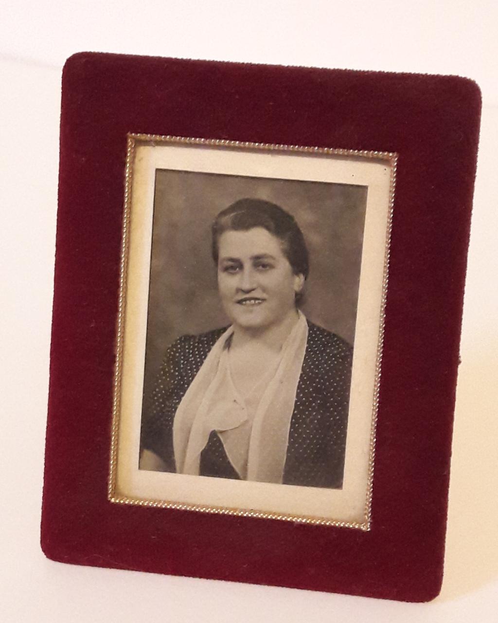 - NOTIZIE STORICO CRITICHE All'interno del portafoto, fotografia in bianco e nero di Leonilde Anna Caterina Monti (1897-1979) di Borgomanero, mamma di Maria Luisa Macchi.
