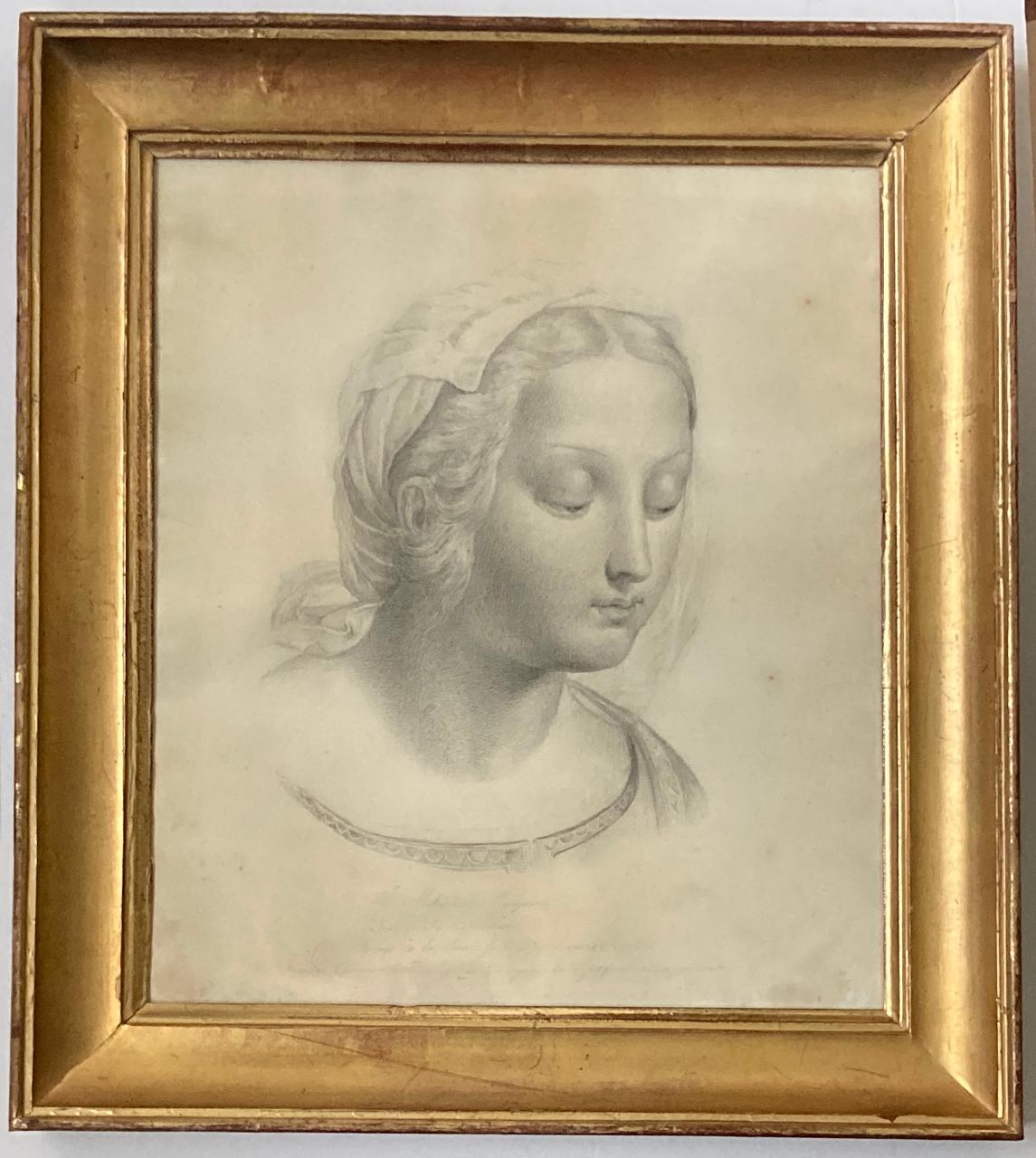 - NOTIZIE STORICO CRITICHE L'opera fa parte del nucleo più importante della collezione Macchi, composta da una serie di disegni e dipinti dell’artista Filippo Carcano (1840-1914), realizzati nella seconda metà dell'Ottocento, che riprendono soggetti di costume o ritratti religiosi e sono realizzati con tecniche diverse, come il carboncino, dipinti all’acquerello oppure a olio. \nSi tratta di una copia del volto della Madonna del dipinto "La Belle Jardinière" di Raffaello Sanzio, datato 1507, conservato al Museo del Louvre di Parigi. \n\nFilippo Carcano nacque nel 1840 a Milano.\nA 15 anni si iscrisse all’Accademia di Brera, frequentando il corso di pittura sotto la guida di Francesco Hayez e poi di Giuseppe Bertini.\nDebuttò nel 1862 alla mostra annuale dell’Accademia con il dipinto Federico Barbarossa e Enrico il Leone a Chiavenna.\nQuesto gli valse il premio Canonica per pittori lombardi dell’800 e 900.\nPoco più tardi dipinse La piccola fioraia, imprimendo una decisa svolta ai suoi orientamenti pittorici attraverso una maggiore attenzione agli effetti cromatici e luminosi e una più fedele resa del vero.\nTale cambiamento raggiunse il culmine nelle due opere presentate a Brera, Una lezione di ballo e Una partita al bigliardo.\nTali dipinti furono però giudicati dalla critica troppo realistici e simili ad una foto.\nAgli inizi degli anni ‘80, dopo aver finalmente ottenuto importanti riconoscimenti, come la nomina a socio onorario di Brera (1874) e la vincita del premio Mylius con il dipinto Buon cuore infantile (1878), iniziò ad avere successo anche all’estero.\nSi dedicò alla pittura di paesaggio realizzando numerose vedute della campagna lombarda e del Lago Maggiore.\nOramai celebre, nel 1881 all’Esposizione Nazionale di Belle Arti, presentò un dipinto con forti toni sociali: L’ora del riposo durante i lavori dell’Esposizione del 1881.\nL’anno successivo vinse il Premio intitolato al Principe Umberto con Piazza San Marco a Venezia.\nSeguirono numerose partecipazioni ad esposizioni nazionali ed internazionali, intervallate da spericolate escursioni su nevai e ghiacciai della Svizzera.\nFilippo Carcano morì a Milano nel 1914.\n(Giordano Luisa, Carcano Filippo, in Dizionario biografico degli italiani, vol. 19 - Roma, Istituto dell'Enciclopedia Italiana, 1976; Cesura Guido, Filippo Carcano (Milano, 1840-1914), prefazione di Predaval Gustavo - Milano, Cavallotti 1986).\n