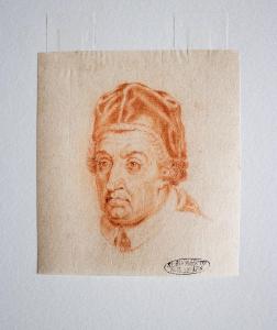 Il ritratto, realizzato a sanguigna, raffigura un uomo di età avanzata rappresentato di tre quarti. Da quanto suggeriscono gli abiti e il berretto papale potrebbe trattarsi di un pontefice.\n