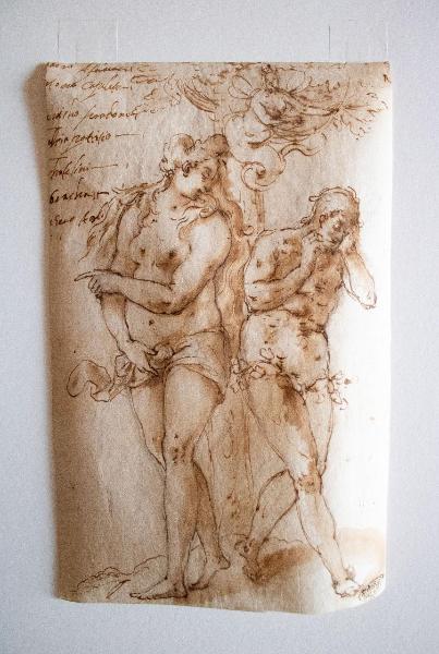 - NOTIZIE STORICO CRITICHE Il foglio pavese, caratterizzato da un segno sicuro veloce ed immediato è sicuramente da correlare ad una composizione più elaborata non ancora identificata.\nLa mano potrebbe ricercarsi nell'ambiente tosco-romano a cavallo tra XVI e XVII secolo