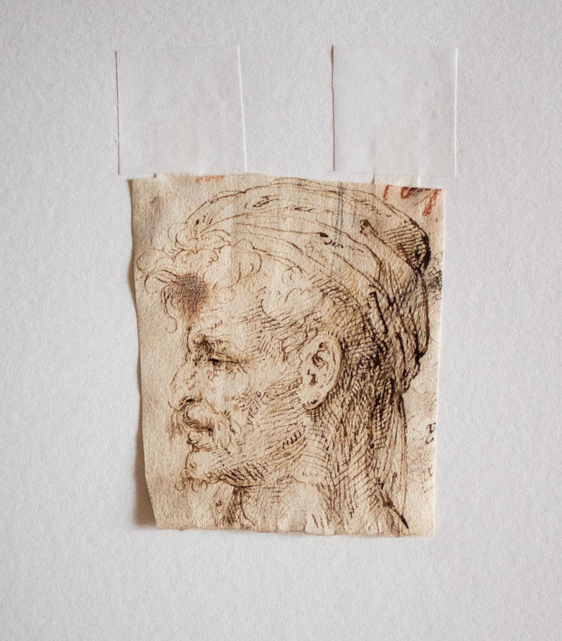 - NOTIZIE STORICO CRITICHE L'opera precedentemente attribuita alla scuola leonardesca dal Malaspina ha trovato la giusta attribuzione in Aurelio Luini (1530-1593) con Giulio Bora nel 1998. Nell'opera l'influenza di Leonardo è evidente, difatti lo stesso Aurelio ne fu eccelso collezionista ed estimatore da quanto ci informa il Lomazzo. Diversi possono essere i confronti con il disegno pavese, in particolare Tordella indica i fogli di Leonardo con studi di teste virili oggi conservate al Louvre (inv. 2652) e all'Ambrosiana (Cod. F 263 inf. n.31). Interessanti sono inoltre i confronti con alcuni esemplari da ricondurre ad Ambrogio Figino (1553-1608) rappresentanti studi di teste virili (inv. K 173 r-v del Teylers Museum di Haarlem, inv. 470 del Museo Nacional de Arte Antiga; inv.1527 dell'Accademia Carrara di Bergamo).