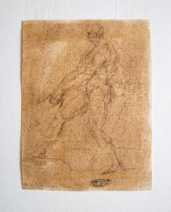 Il disegno ritrae un giovane atleta mentre impugna una corda tra le mani. Sulla spalla si intravede un lungo panneggio. \n