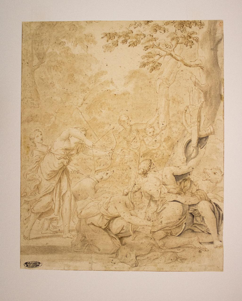 - NOTIZIE STORICO CRITICHE La scena è ripresa dall'Eneide scritta da Virgilio tra il 29 e il 19 a.C.\nL'opera potrebbe essere ricondotta a Marcantonio Franceschini, pittore bolognese. \nEgli realizza con lo stesso tema la tela per Stefano I Pallavicini nel 1715 con "La caccia di Diana e Le ninfe che disarmano amorini", successivamente nel 1722 tre tele con le scene di Diana e Pan, Diana e Endimione e la Nascita di Apollo e Diana.