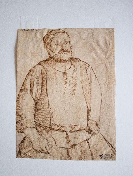 - NOTIZIE STORICO CRITICHE Il disegno pavese è da considerare una copia del Ritratto di Pier Giovanni di Pier di Matteo Nicolini converso del convento di Vallombrosa (Brema, Kunsthalle, inv. n.37/268) realizzato da Federico Zuccari (1539/1540-1609) e trasportato in pittura nel settore ovest dell'intradosso della cupola di Santa Maria del Fiore, dove secondo il programma iconografico è rappresentato il "Popolo Christiano" descrivendo in primo piano il converso vallombrosano spogliato dell'abito religioso. (Tordella 2000, pp. 431-432).\n