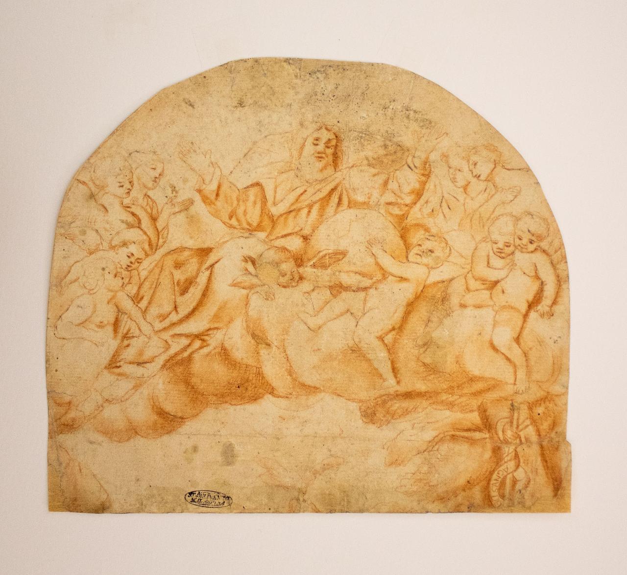 Il foglio ritrae al centro il Padre Eterno in atto benedicente adagiato sulle nuove insieme ad alcuni putti, due dei quali reggono un grande globo.\nIn basso a destra un bastone con cartiglio reca l'iscrizione Agnus dei.\n