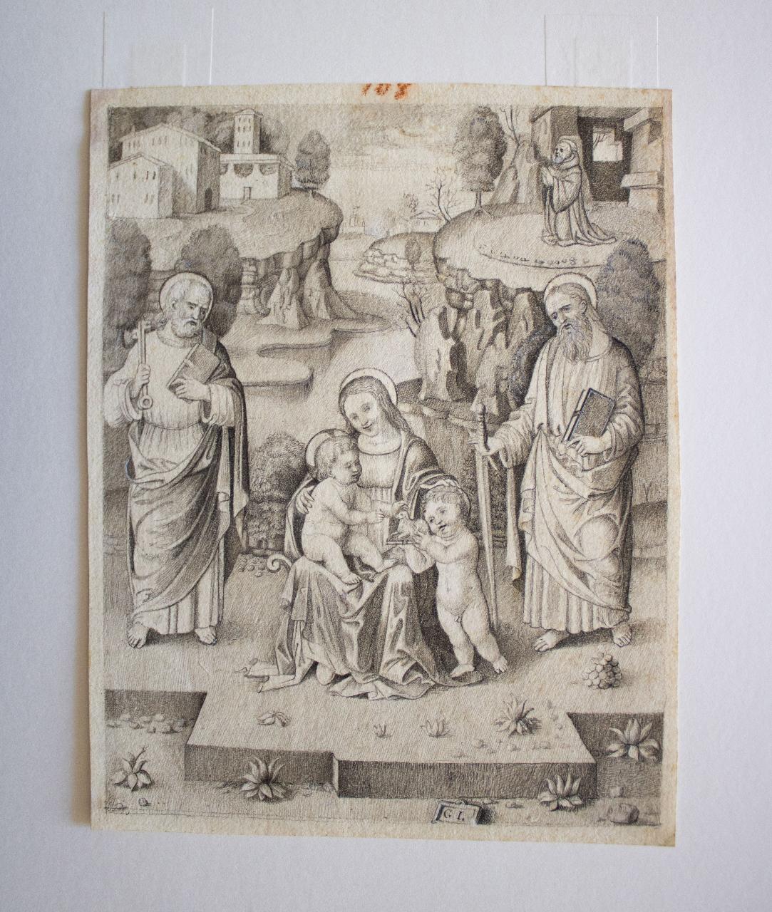 Copia da miniatura del museo. Madonna col Bambino, San Giovannino, San Pietro e San Paolo
