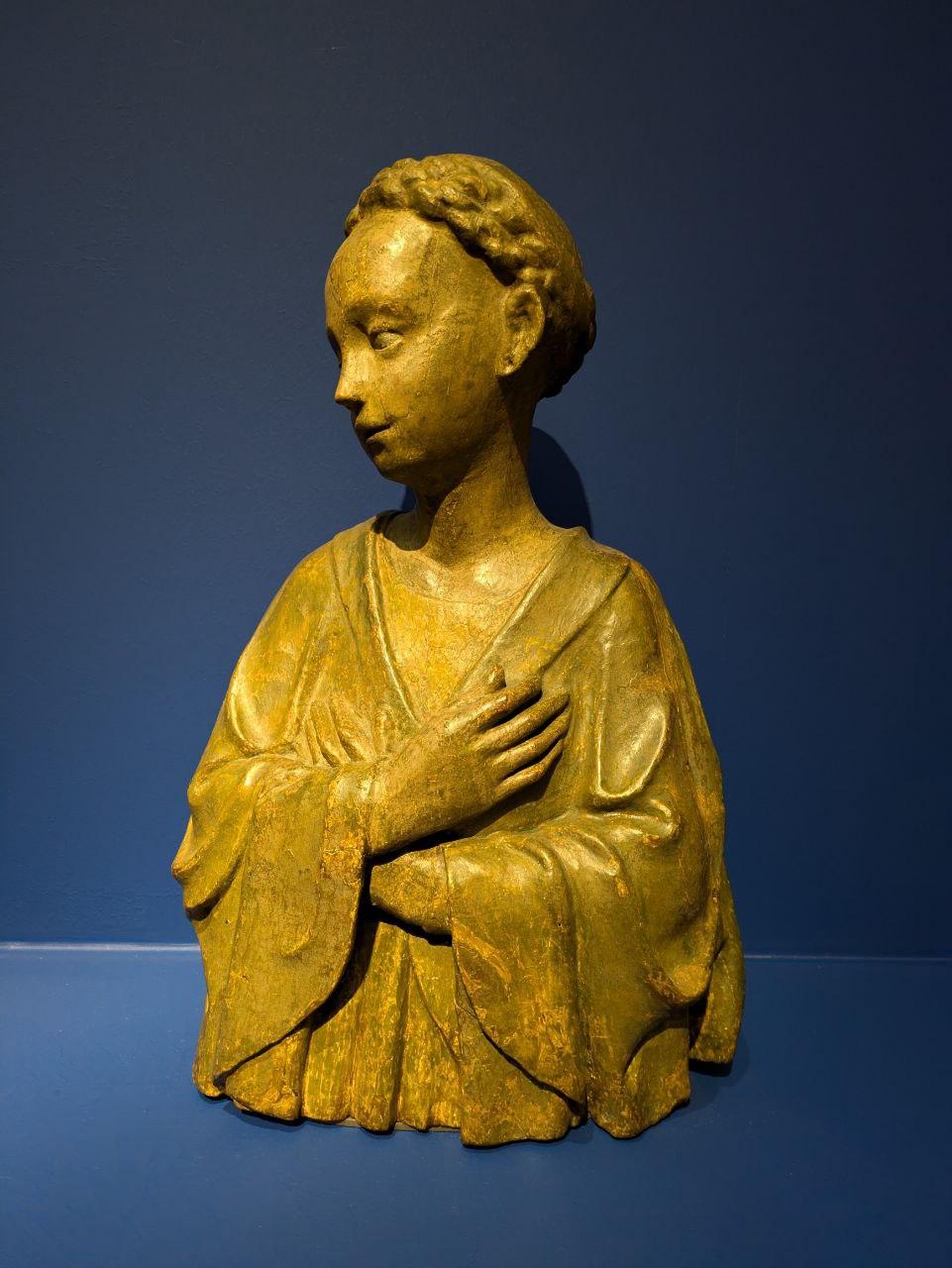 Mezzo busto ligneo raffigurante la Vergine nel momento dell' Annunciazione, con un incavo nella parte posteriore
