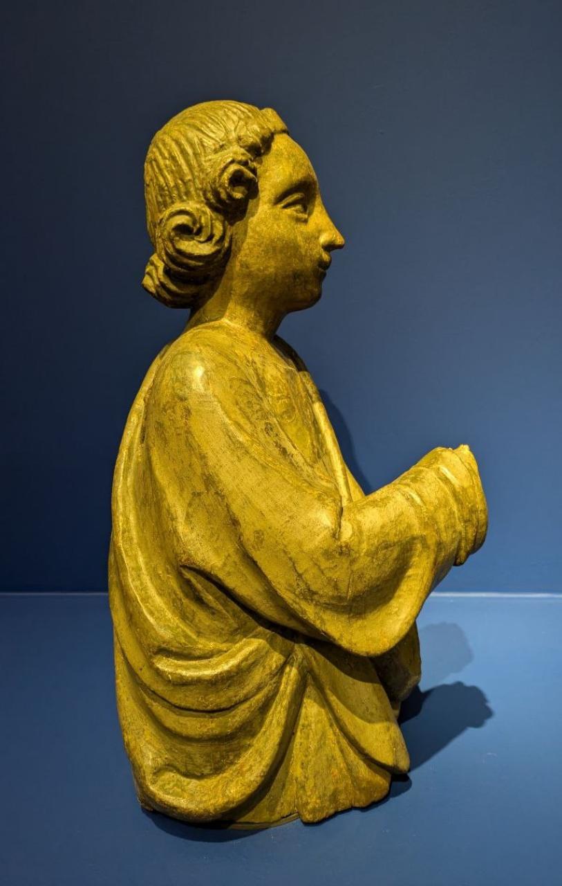 Mezzo busto ligneo raffigurante l'angelo annunciante, mutilo delle mani e con una tacca per l'immorsatura dell'ala
