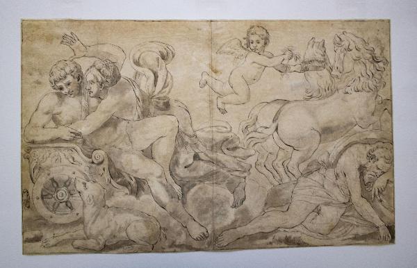 - NOTIZIE STORICO CRITICHE L'opera, mediocre nell'esecuzione, copia l'incisione di Carlo Cesio (Antrodoco 1622 – Rieti 1682) derivante dall'affresco di Annibale Carracci (Bologna 1560 – Roma 1609) con "Aurora e Cefalo" nel Palazzo Farnese di Roma. Eseguito tra il 1597 e il 1607.