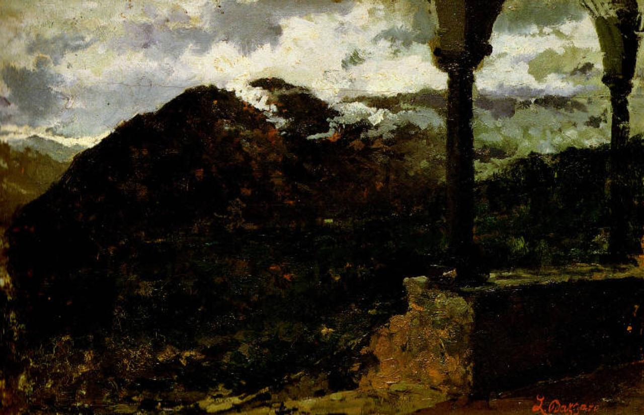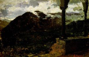 - NOTIZIE STORICO CRITICHE Il dipinto è particolarmente riuscito per la parte del cielo, per la resa delle nuvole che toccano il profilo delle montagne. Il paesaggio è descritto invece in modo molto semplificato, con impasti carichi di materia.