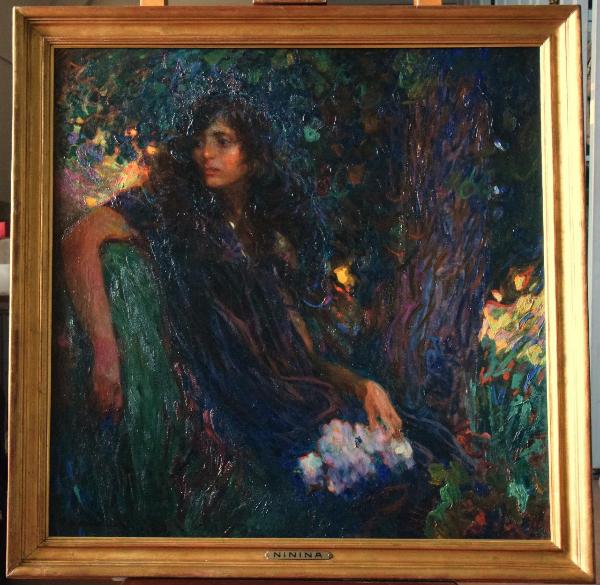 - NOTIZIE STORICO CRITICHE In quest'opera, si nota l'intensificarsi della pennellata, carica cromaticamente e materica, al limite del gestuale. Il dolcissimo volto di Lucilla, enigmatico e distante come un ritratto simbolista di Klimt o di Khnopff, e l'intera figura paiono un tutt'uno con la natura avvolgente e protagonista, in una commistione totale. Nomellini seppe inserire nella sua personale evoluzione artistica echi simbolisti e liberty, che si colgono nella tecnica ritmica e sinuosa e nelle gamme cromatiche, al limite dell'espressionismo.