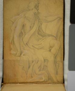 Figura maschile panneggiata seduta in contemplazione.